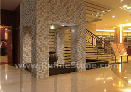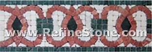 A set of marble or other stone mosaics in proper mosaic designs have broad applications. More and more mosaic floors, mosaic ceilings, mosaic walls and outdoor mosaic paving are seen in modern building construction projects. Refine Industrial Co.,LIMITED designs and produces hundreds of beautiful styles of the stone mosaics, including marble mosaic, granite mosaic, onyx mosaic, travertine mosaic and mixed stone mosaic, in the form of stone mosaic pattern, marble mosaic medallion, marble mosaic tiles, stone mosaic arts and stone mosaic border. All our stone mosaics are mounted on sheets and ready for installations. Our stone mosaics are fully customizable in dimension, chip color, chip size and chip shape. We have large production capacities for the production of stone mosaic items. Special discounts on large orders of all stone mosaic products.